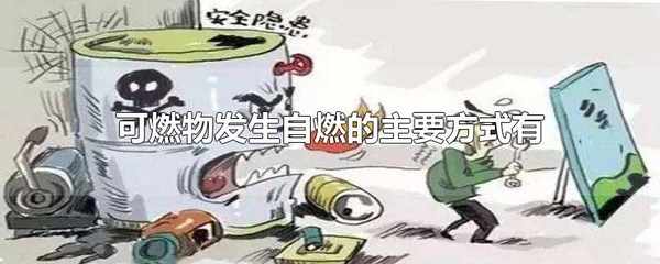 可燃物發生自燃的主要方式有:氧化發熱、分解放熱、聚合放熱、吸附放熱、發酵放熱、活性物質遇水、可燃物與強氧化劑的混合。自燃是指可燃物在空氣中沒有外來火源的作用,靠自熱或外熱而發生燃燒的現象。