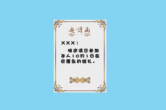 在封面寫請柬的二字的時候,一般要加入藝術加工,可以用美術體的文字,或是色彩的燙金,周圍可以添加一些圖案的裝飾物,這樣可以讓結婚請帖更加的美觀。