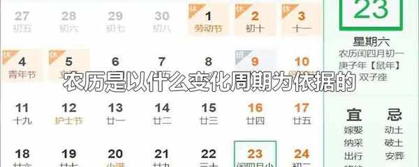 農歷是以月相的變化周期為和太陽回歸年的長度依據的。農歷根據月相的變化周期,每一次月相朔望變化為一個月,並把一個太陽回歸年劃分為24段,形成二十四節氣,農歷是融合瞭陰歷與陽歷的一種陰陽合歷歷法。