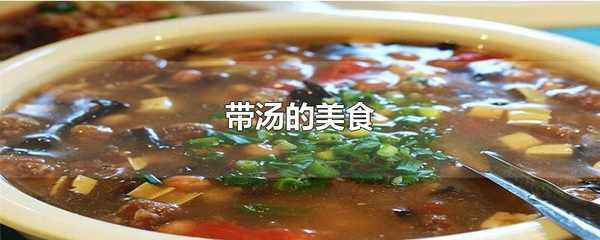 帶湯的美食較多,比如中國的胡辣湯、麻食、西紅柿雞蛋疙瘩湯、酸辣湯、碗仔翅、牛肉湯、羊肉湯、豆腐湯、丸子湯、不翻湯、佛跳墻、四神湯、麻油雞等,以及日本的味噌湯、泰國的冬蔭功湯、印度的咖喱肉湯、歐洲的奶油蘑菇湯、法國的馬賽魚湯、俄國的羅宋湯等。