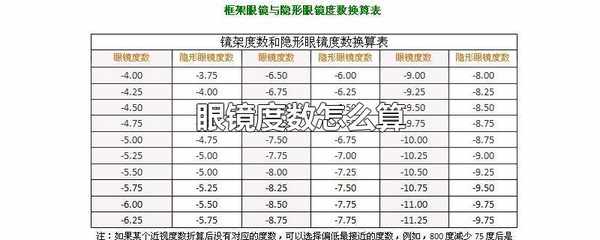 眼鏡的度數=屈光度數x100。屈光度是屈光力的大小單位,以D表示,是指平行光線經過該屈光物質,以焦點在1m時該屈光物質的屈光力為1屈光度或1D。屈光度的檢查包括視網膜檢影鏡法和自動驗光儀驗光法。1屈光度或1D等於常說的100度。