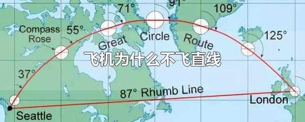 地球是一個圓弧,而非平面,在地球上兩點之間的最短距離是一段圓弧,並非直線,飛機飛圓弧的飛行距離比較短。