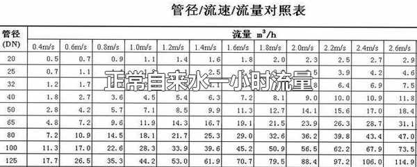 正常自來水一小時流量數值具體需要根據流量的大小、速度、水管的口徑等多種因素決定,理想狀態下,假設水的流速為2.2m/s,水龍頭的口徑為DN20,一小時水的流量便為2.5立方米。