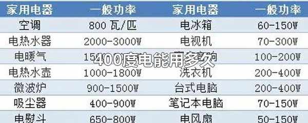400度電可以用多久取決於電器的功率、用電時間等因素。一度電等於一千瓦,以一個功率為一千瓦的傢用電器為例,400度電大概可以用400個小時,正常情況下,一度電可以讓冰箱運行一天,大概可以用400天。