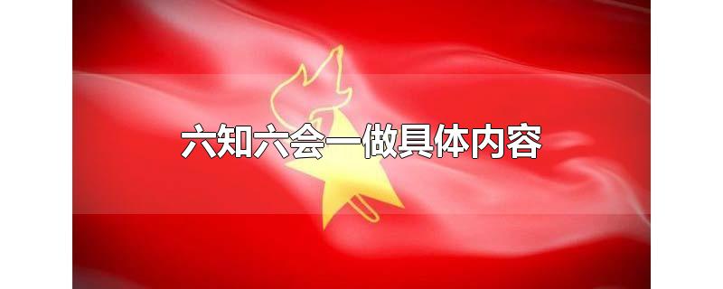 少先隊六知是指,知道隊名、隊旗、紅領巾、隊禮的意義、隊的領導者和隊的作風。四會是指,會戴紅領巾、行隊禮、唱隊歌、呼號。一做是,入隊前按隊章做一件好事。