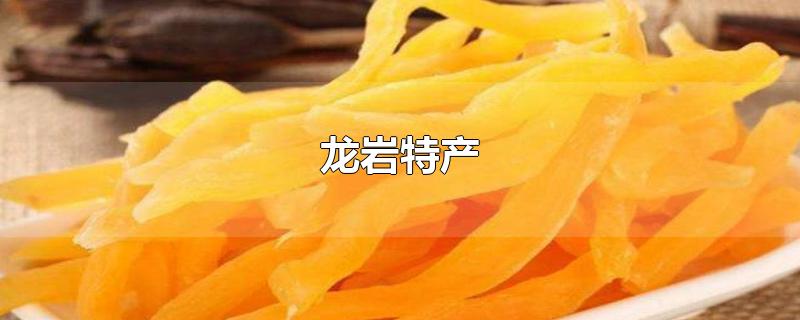 龍巖特產有:永定紅柿、龍巖咸酥花生、永定巴戟天、武平仙草、長汀河田雞、永定菜幹、連城白鴨、槐豬、黃(黑)兔、蘭花、漳平水仙、連城地瓜幹、武平西郊盤菜、清香鏡子粉、長汀客傢兜湯、客傢錘圓、武夷巖茶、芋餃、長汀豆腐幹、明溪肉脯幹等。