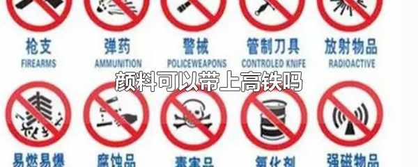 顏料不可以帶上高鐵。顏料屬易燃物品。高鐵常見的違禁品包括煙花爆竹、火藥、壓縮氧氣、雙氧水、汽油、酒精、松節油、煤油、強酸、劇毒藥等。限制攜帶的物品有:氣體打火機、火柴,氣體打火機、安全火柴等。