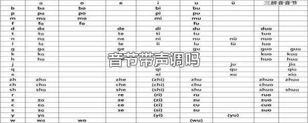 音節帶聲調。音節包括聲母、韻母和聲調,有的是零聲母音節,也需要帶聲調。音節是語音中最小的結構單位,也是人們可以自然地察覺到的最小的語音單位。