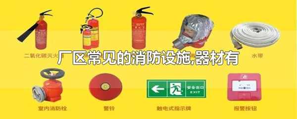 廠區常見的消防設施有:建築防火及疏散設施、防煙及排煙設施、自動噴水與滅火系統、火災自動報警系統、消火栓系統、移動式滅火器材、幹粉滅火系統等。常見的消防器材有:手提式滅火器、滅火毯、消火栓、防煙面罩、逃生繩、強光手電、報警類、破拆工具等。