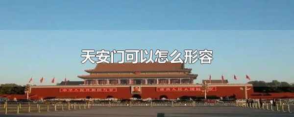 氣勢恢宏、莊嚴肅穆、巍巍壯觀、巍峨莊重、萬眾矚目等詞語都可以形容天安門。空前絕後:誇張性地形容獨天安門一無二,重橫交錯:指天安門的建築風格橫的豎的交叉在一起。