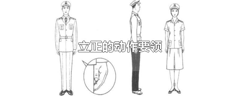 立正的動作要領:兩個腳的腳跟要靠攏並齊,腳尖向外分開約60度,小腿要挺直,小腹要微微收,頭要抬起來,自然挺胸,目視前方,肩膀要平並稍微向後張,兩臂自然下垂,手指並攏自然微屈,拇指尖貼於食指的第二節,中指貼於褲縫。