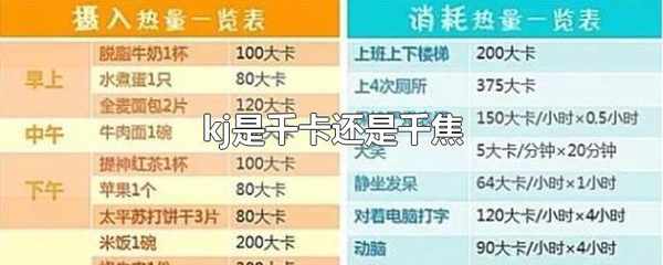 Kj代表的是千焦。Kj是英語單詞kilojoule的縮寫,表示的是千焦的意思,千焦是熱量的單位,1千焦等於1000焦耳。千卡一般用Kcal表示,是英文單詞kilocalorie的縮寫,表示的是千卡,大卡的意思。