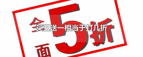 買五送一相當於打8.3折。買5送1即用相同的價錢可以買6個,則5÷6x100%=83.3%。折扣是商品買賣中的讓利、減價,是賣方給買方的價格優惠。打折是在原來售價的基礎上降價銷售,幾折表示實際售價占原來售價的成數。10%是一成,也是一折。