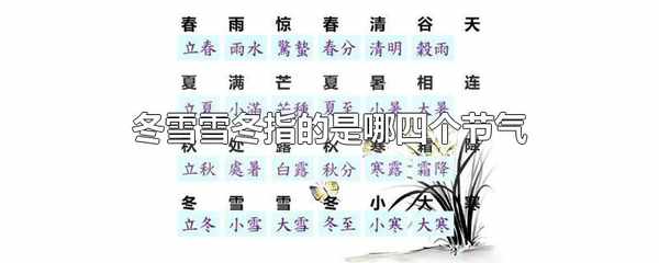 冬雪雪冬指的是立冬、小雪、大雪、冬至四個節氣。“冬雪雪冬小大寒”這句是節氣歌裡面的關於冬季的節氣描述,在冬天的6個節氣分別是:立冬、小雪、大雪、冬至、小寒、大寒。