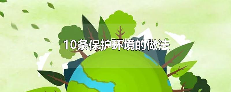 一、垃圾分類。二、植樹造林。三、減少污水、廢水排放。四、減少廢氣排放。五、不濫砍濫伐樹木。六、不亂丟垃圾。七、不隨地吐痰。八、少用一次性用品。九、節約用水、用電。十、盡量步行或騎自行車。
