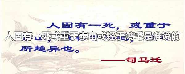 “人固有一死或重於泰山或輕於鴻毛”是司馬遷說過的話,出自於他寫的《報任安書》中。而這句話的意思是人本來就是要死的,有的人死得比泰山還重,有的人卻比鴻毛還輕,表現出瞭個人的生死觀。