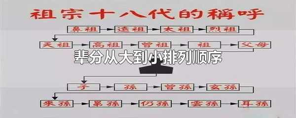 輩分的大小順序在中國的文化中是分為上下序的,年長的長輩為上序:鼻祖、遠祖、太祖、烈祖、先祖、高祖、曾祖、祖、父母。