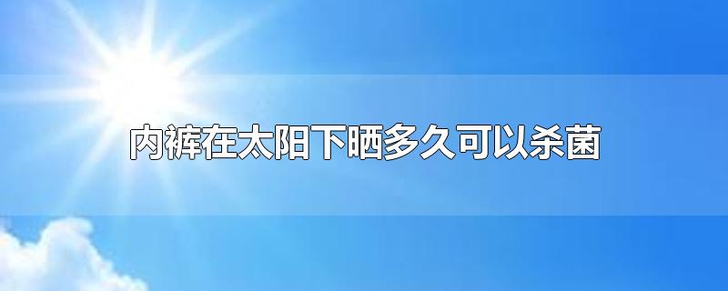 視情況而定。夏季,內褲在太陽下曬1個小時左右,其他季節可適當增加1-2個小時左右,最好不要超過4個小時。內褲在通風處晾幹後放置太陽底下晾曬,陽光中的紫外線能殺菌消毒,保持內褲衛生。但曬太久會影響內褲材質,破壞纖維,導致內褲發硬變形。