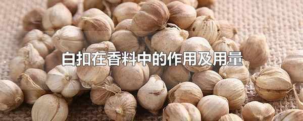 白扣的用量通常為每50千克鹵湯中添加25-30克。其主要用途是用於調配香精,香精亦稱為調和香料。植物性香料通常用於燉肉等的添加,可使食物香味濃鬱。白扣作為辛香料,味辛,性溫,有芳香而辛辣的氣味。