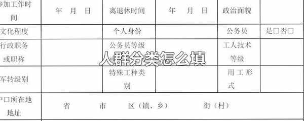 如果是求職登記表上的人群分類,一般填寫應屆生、在職人員、社會人員等,如果是社保登記表上的人群分類,一般填寫退休或者未退休,如果是人事檔案表上的人群分類,一般填寫幹部或者實習生等。