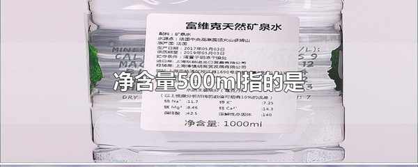 凈含量500ml指的是裡面的液體的體積是500毫升。凈含量,指的是除去包裝容器和其他包裝材料後內裝商品的量。不論商品的包裝材料,還是任何與該商品包裝在一起的其他材料,均不得記為凈含量。