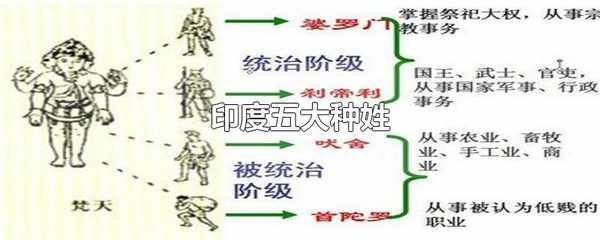 印度五大種姓為:婆羅門、剎帝利、吠舍、首陀羅和達利特。五大種姓在地位、權利、職業、義務等方面有嚴格的規定,並且種姓制度下的各等級世代相襲。第一等級婆羅門主要是僧侶貴族,擁有解釋宗教經典和祭神的特權以及享受奉獻的權利。