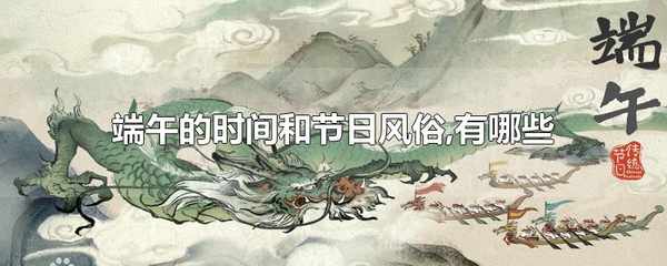 每年的農歷五月初五是端午節。端午節的習俗有賽龍舟、舞龍、舞獅、吃粽子、佩香囊、懸艾葉菖蒲、掛荷包、拴五色絲線、喝雄黃酒、采藥、制涼茶等。端午節,又稱端陽節、龍舟節、重午節、天中節等。
