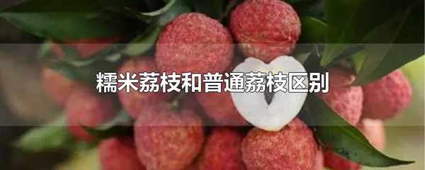 糯米荔枝果形呈偏心臟形,歪柄,果形較大,色澤鮮紅間蠟黃,果皮棘感不明顯,果肉乳白色,口感嫩滑,味極清甜,核瘦小。普通荔枝果皮顏色為暗紅色至鮮紅色,果實短卵圓形,核比較大,味道酸甜。