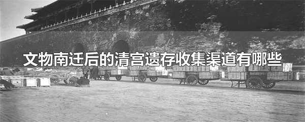 文物南遷後的清宮遺存收集渠道有政府調撥、資金購買和社會捐贈。故宮文物南遷是民國時期故宮博物院組織的文物保護行動,1933年1月31日山海關失陷後,故宮博物院理事會決定將故宮部分文物分批運往上海。
