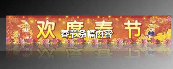 春節條幅內容有:1、歡天喜地迎新春,尊老愛幼促和諧。2、喜迎新年、歡度新年、再接再勵、再創輝煌。3、恭祝全體員工及傢屬:新春快樂、闔傢幸福。4、以我文明新貌,喜迎文明盛會。5、文明過新年,快樂每一天。