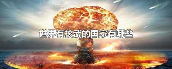 世界有核武器的國傢有中國、美國、俄羅斯、英國、法國、印度、巴基斯坦、以色列、朝鮮。核國傢是指擁有並具備制造、生產可用於實戰的核武器的國傢,包括有核國傢、非法擁核國傢、匿核國傢和棄核國傢。全世界一共有8個主權國傢已經成功試爆核武器。