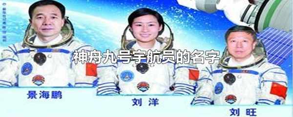 神舟九號宇航員分別是景海鵬、劉旺、劉洋。神舟九號飛船於2012年6月16日18時37分24秒發射,在太空停留13天,於29日返回。神舟九號飛船搭載3名宇航員,包含首位女宇航員劉洋。