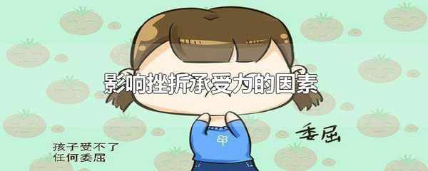 影響挫折承受力的因素有心理生理條件、過去經驗、挫折頻率、認知因素、個性因素、環境因素、應付挫折。挫折承受力與人的生理和心理狀態息息相關,其中心理狀態是影響人抗挫折能力的重要因素。並且一個人的性格、世界觀、價值觀均對挫折承受力有重要影響。