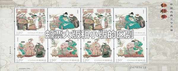 郵票大版和小版的區別是大版面積較大、全張枚數較多,小版面積較小、全張枚數較少。郵票小版全張一般在12枚以內,小版做得也會不大版精美一些。郵票小版的發行量會小於大版,郵票大版則多用於拆單零售。