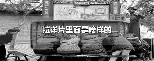 拉洋片裡面是琉鏡、推片、西湖景、水箱子和大洋船。拉洋片是中國的一種傳統民間藝術。表演者通常為1人。使用的道具為四周安裝有鏡頭的木箱。箱內裝備數張圖片,並使用燈具照明。表演時表演者在箱外拉動拉繩,操作圖片的卷動。同時配以演唱,解釋圖片的內容。