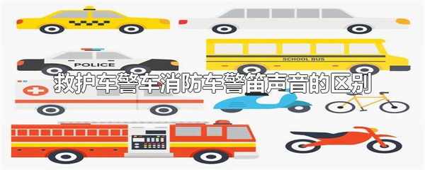 救護車警笛聲是高音一秒,平音一秒,間隔一秒,循環反復。警車的警笛聲是沒有間隔非常急促的,低音和高音一直在反復。消防車的警笛是三秒長音,間隔一秒,循環反復,消防車的警報比較緩慢。