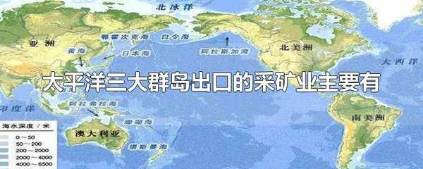 太平洋三大群島出口的采礦業主要有磷酸鹽、有色金屬、貴金屬。太平洋三大群島即美拉尼西亞、密克羅尼西亞和波利尼西亞群島。美拉尼西亞盛產並出口鎳、鉻、金等金屬。密克羅尼西亞主產磷酸鹽等。波利尼西亞礦物有磷酸鹽、鎳、鉻等。