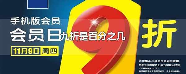 九折是百分之九十。九折表示原來數量上的“90%”,一般用來表示商品原價的折扣程度,用商品原來的價格乘以90%,就得到打瞭9折後的商品價格,如果一件商品的原價為100元,打瞭9折後,商品的價格為:100×90%=90元。