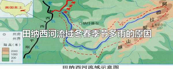 田納西河流域冬春季節多雨的原因是因為受地形因素的影響,田納西河流域位於阿巴拉契亞山脈西側,該地冬春季節盛行西北風,西側是迎風坡,所以在迎風坡會形成地形雨,降水多。