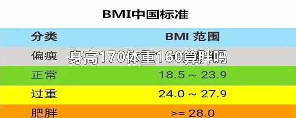 正常情況下,人的身高為170厘米時的標準體重為65公斤,即130斤。若170厘米的身高體重為160斤的話,其體重指數為27.68.屬於按照標準劃分的超重的范圍,且接近肥胖。