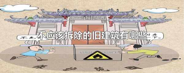 不應該拆除的舊建築:具有歷史、藝術、科學價值的古文化遺址、古墓葬、古建築、石窟寺和石刻、壁畫。與重大歷史事件、革命運動或者著名人物有關的以及具有重要紀念意義、教育意義或者史料價值的近代現代重要史跡、實物、代表性建築。