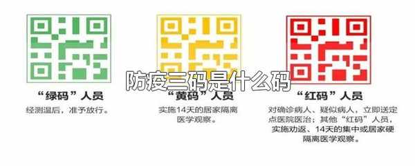 防疫三碼是健康碼的綠碼、黃碼和紅碼。大部分地區的健康碼分為綠碼、黃碼和紅碼三種,不過有些地區還有紫碼和橙碼等。綠碼可以自由通行,黃碼需要隔離7-14天,體溫正常就會變為綠碼。紅碼是確診病例、疑似病例、發熱病例和無癥狀感染者。