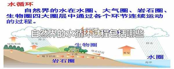 自然界的水循環過程包括蒸發、植物蒸騰、水汽輸送、降水、地表徑流、下滲、地下徑流等環節。其中,蒸發是水循環中最重要的環節之一。水循環指的是地球上不同地方的水通過不的狀態移動到另一個地方的現象。