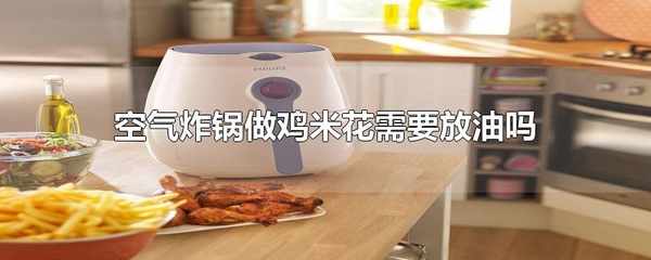 空氣炸鍋做雞米花不需要放油。空氣炸鍋最大的優點就是不需要放油,不但不用放油,它還會把雞肉裡多餘的油脂排出去,用完炸鍋後,會看到底部有一些油。空氣炸鍋就是用空氣取代油來對食物進行炸制。