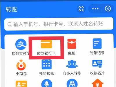 3、在轉賬頁面點擊“轉到銀行卡”。