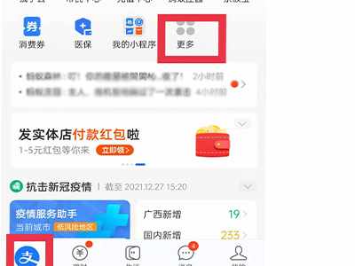 1、打開支付寶,點擊“更多”。