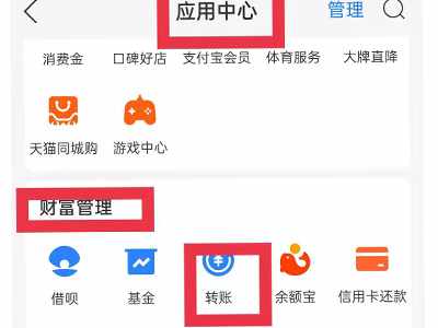 2、點擊財富管理下方的“轉賬”。