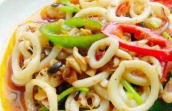 准备食材:鲜鱿鱼、青红椒、葱蒜、豆豉酱、酱油、料酒、胡椒粉、鸡精、盐、油。