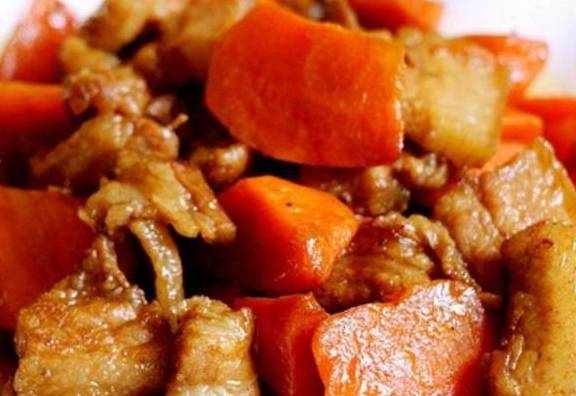 准备食材:五花肉、胡萝卜、葱姜、酱油、盐、油。