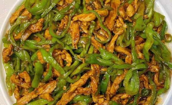 做法:肉丝如图腌10分钟,下油炸熟;热油爆香蒜末,加入辣椒爆香